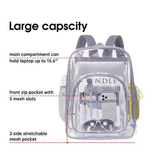 Clear Backpack Heavy Duty PVC Transparent Backpack with Reinforced Strap for College Workplace (GREY)