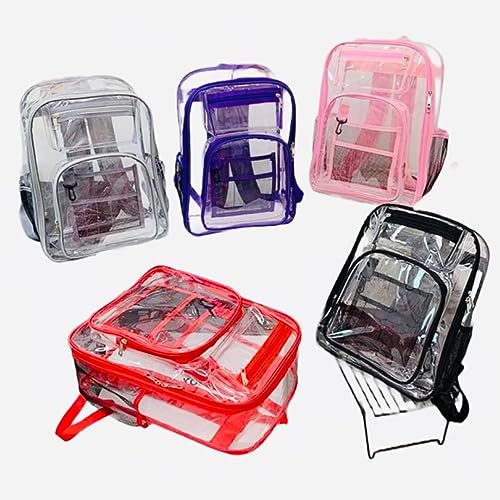 Clear Backpack Heavy Duty PVC Transparent Backpack with Reinforced Strap Stitches & Large Capacity for College Workplace Security - Purple