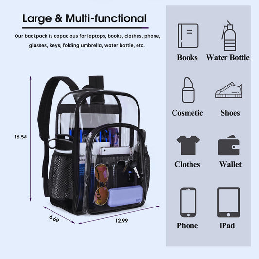 Clear Backpack Heavy Duty -Clear Backpack For Stadium- PVC Transparent Backpack Large Clear Book Bag for College Work Clear Backpack Black