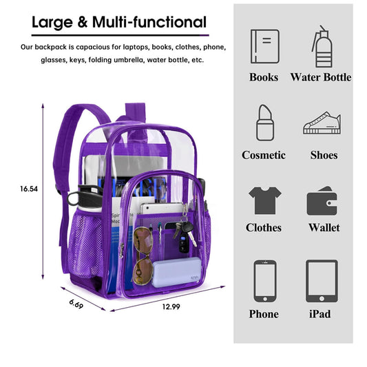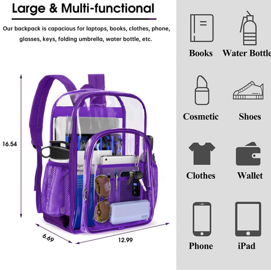 Clear Backpack Heavy Duty -Clear Backpack For Stadium- PVC Transparent Backpack Large Clear Book Bag for College Work Clear Backpack Purple