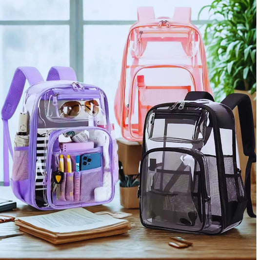 Clear Heavy Duty PVC Transparent Large Backpack For Stadium College Work Black